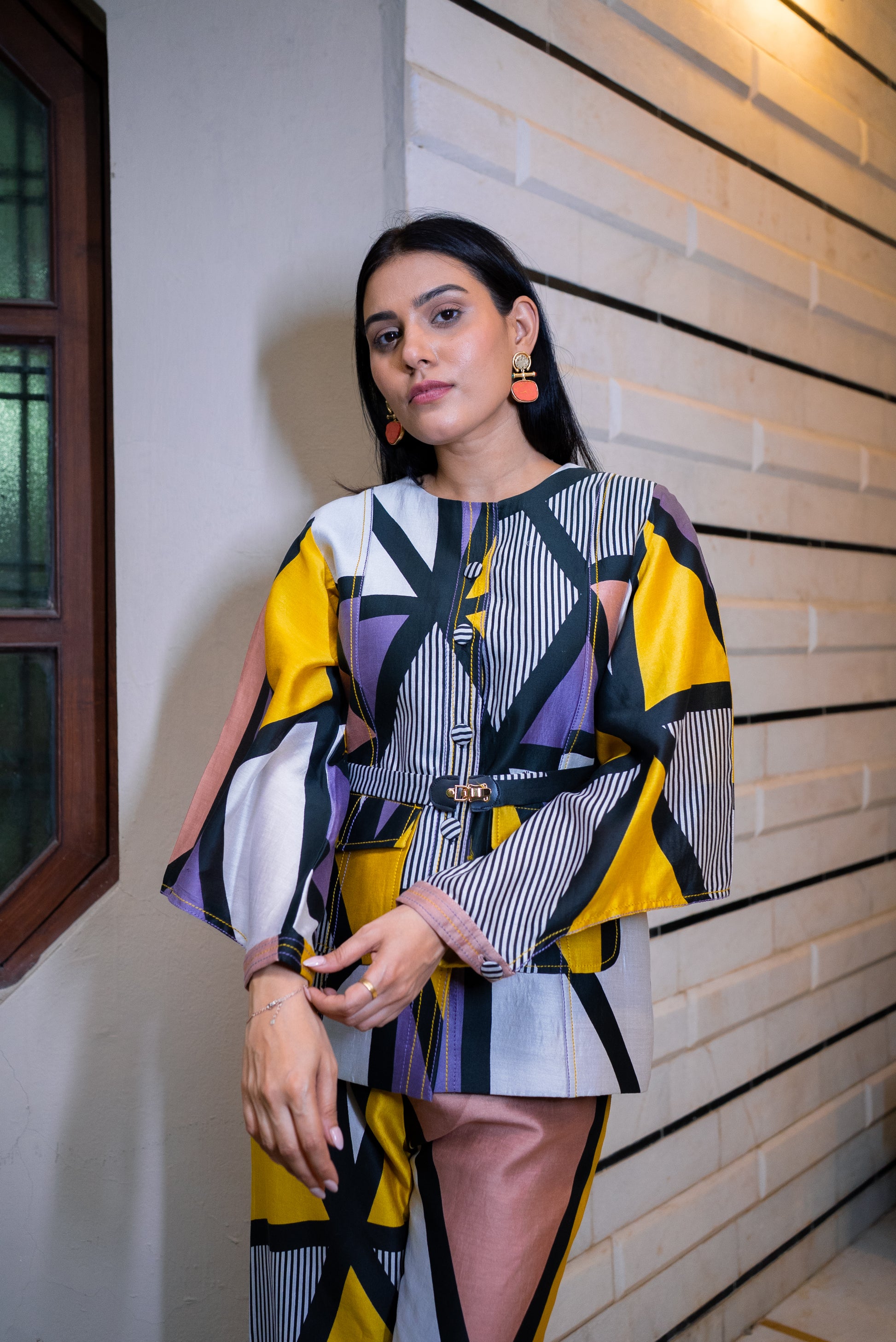 Presenting a vibrant multicolour Chanderi twin set, blending tradition with contemporary flair.