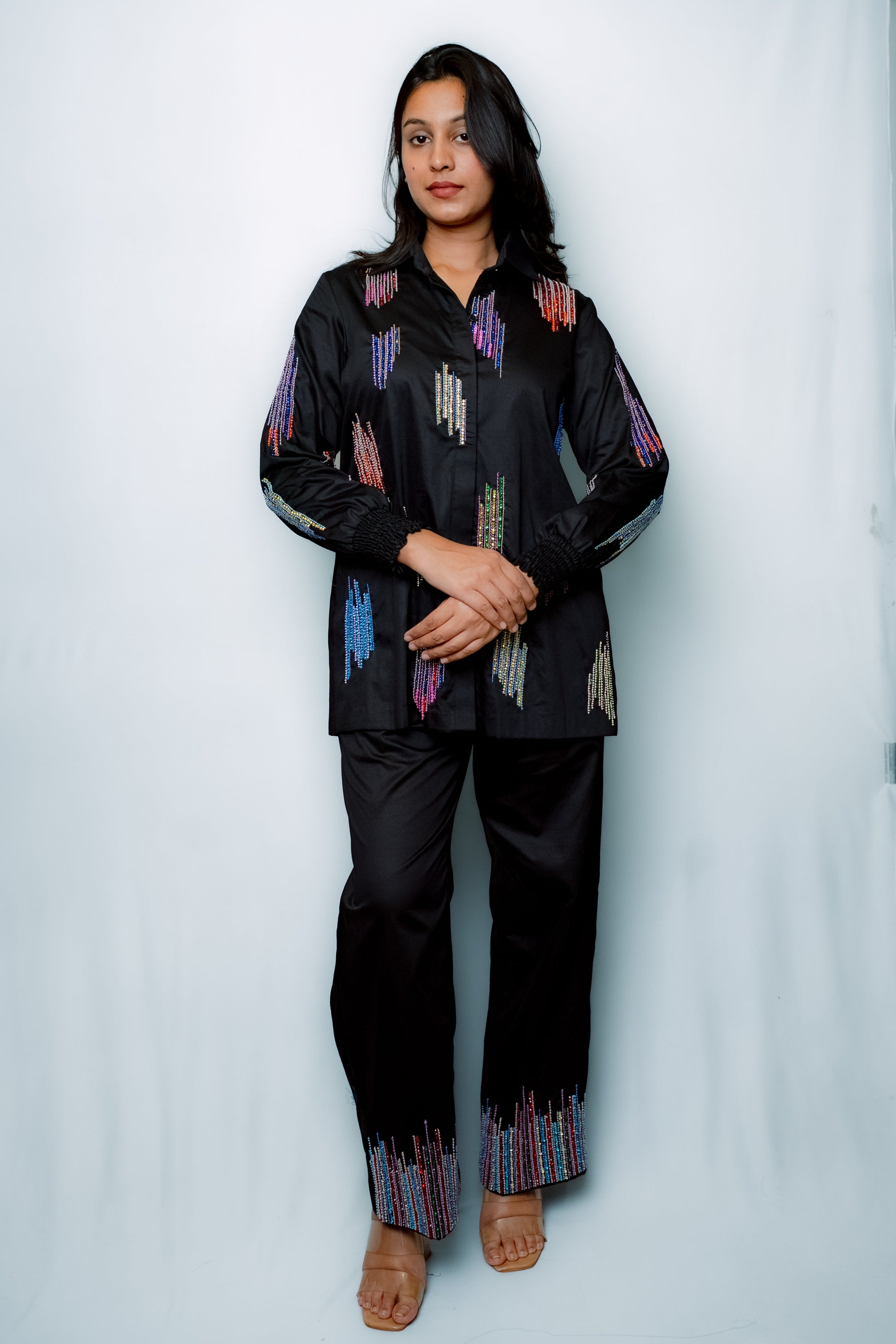 Featuring a black cotton twin set adorned with elegant embroidery, perfect for stylish comfort.