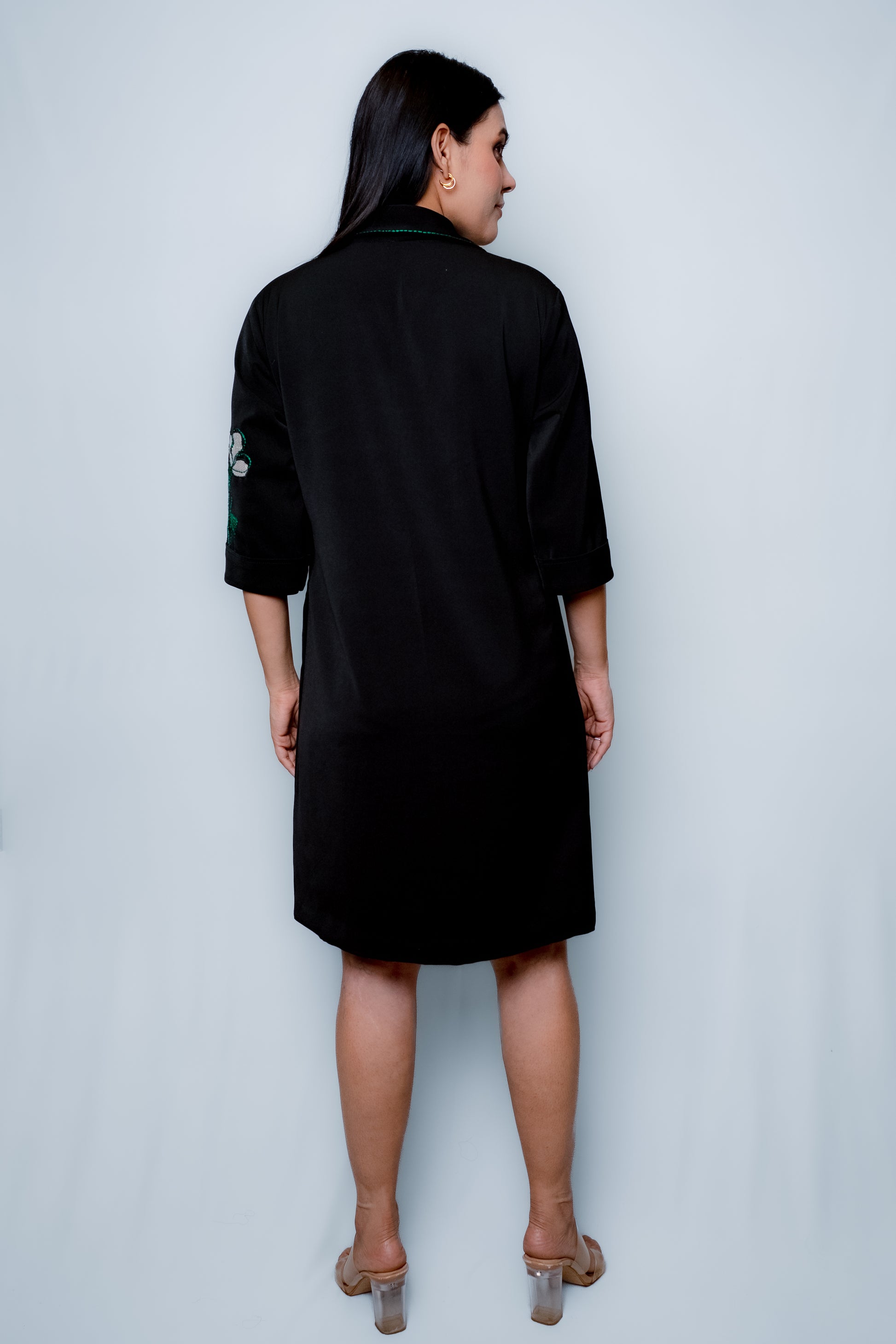 Featuring elegant black floral embroidery, this dress exudes timeless sophistication and delicate craftsmanship.
