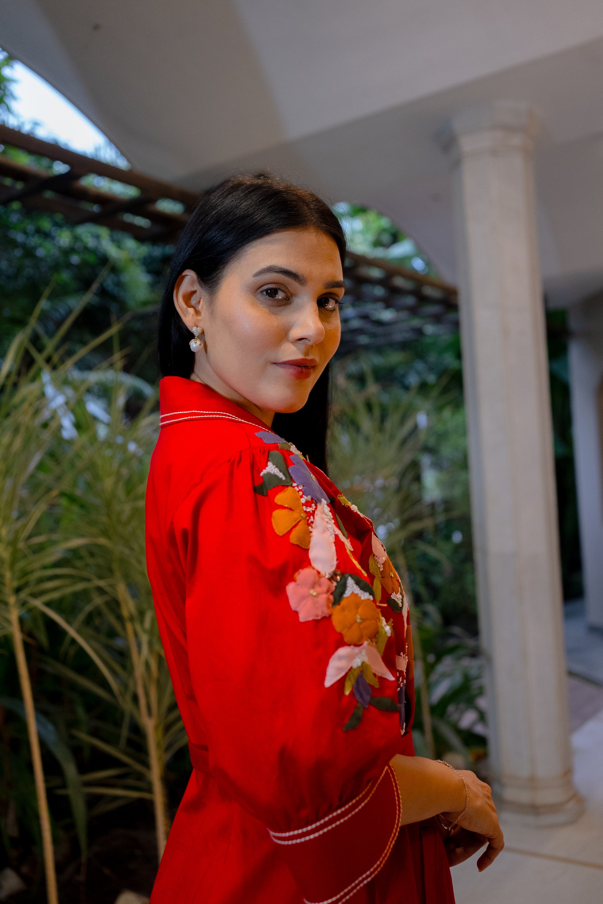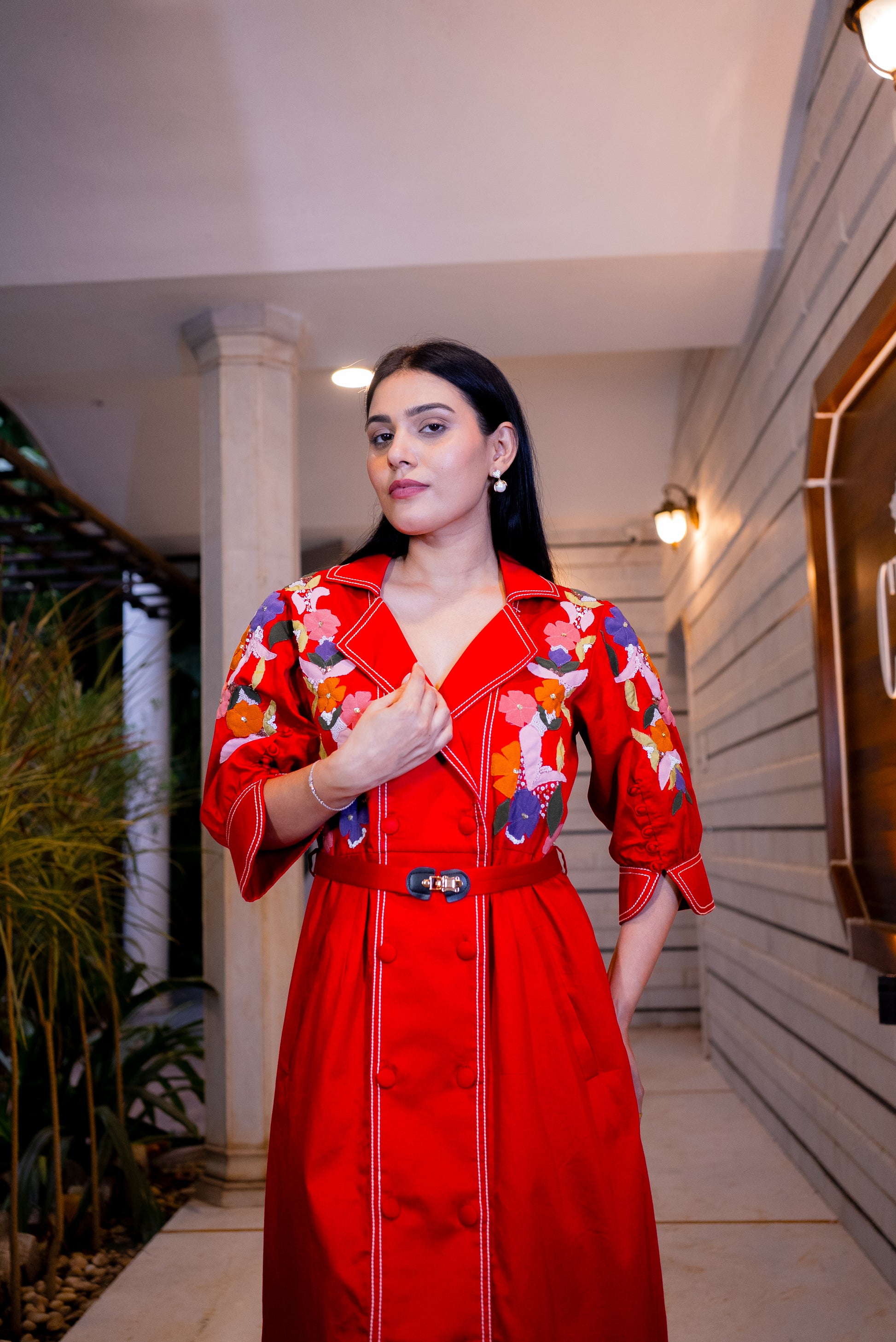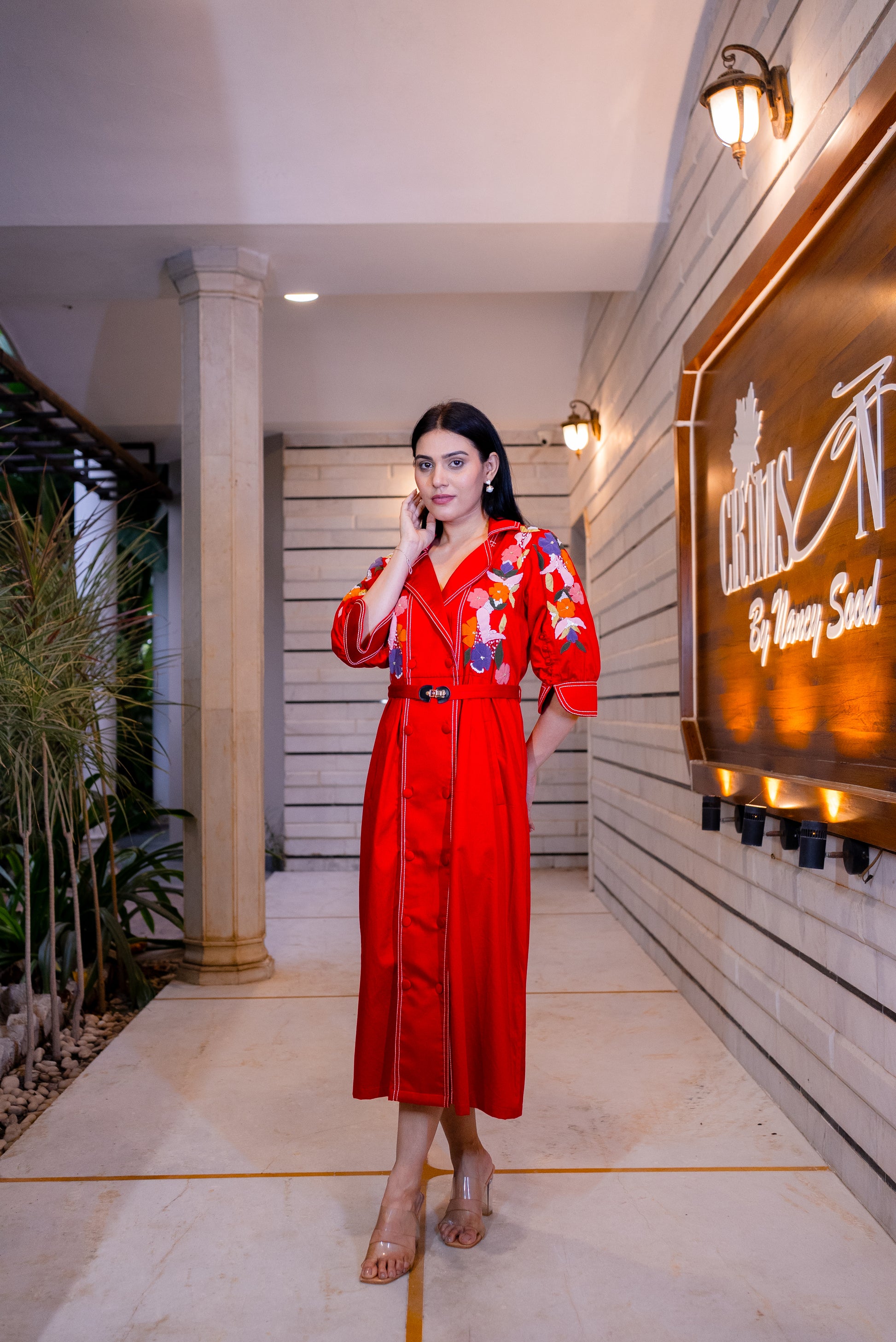 Showcasing exquisite embroidery, our red shirt dress is a statement in refined fashion.