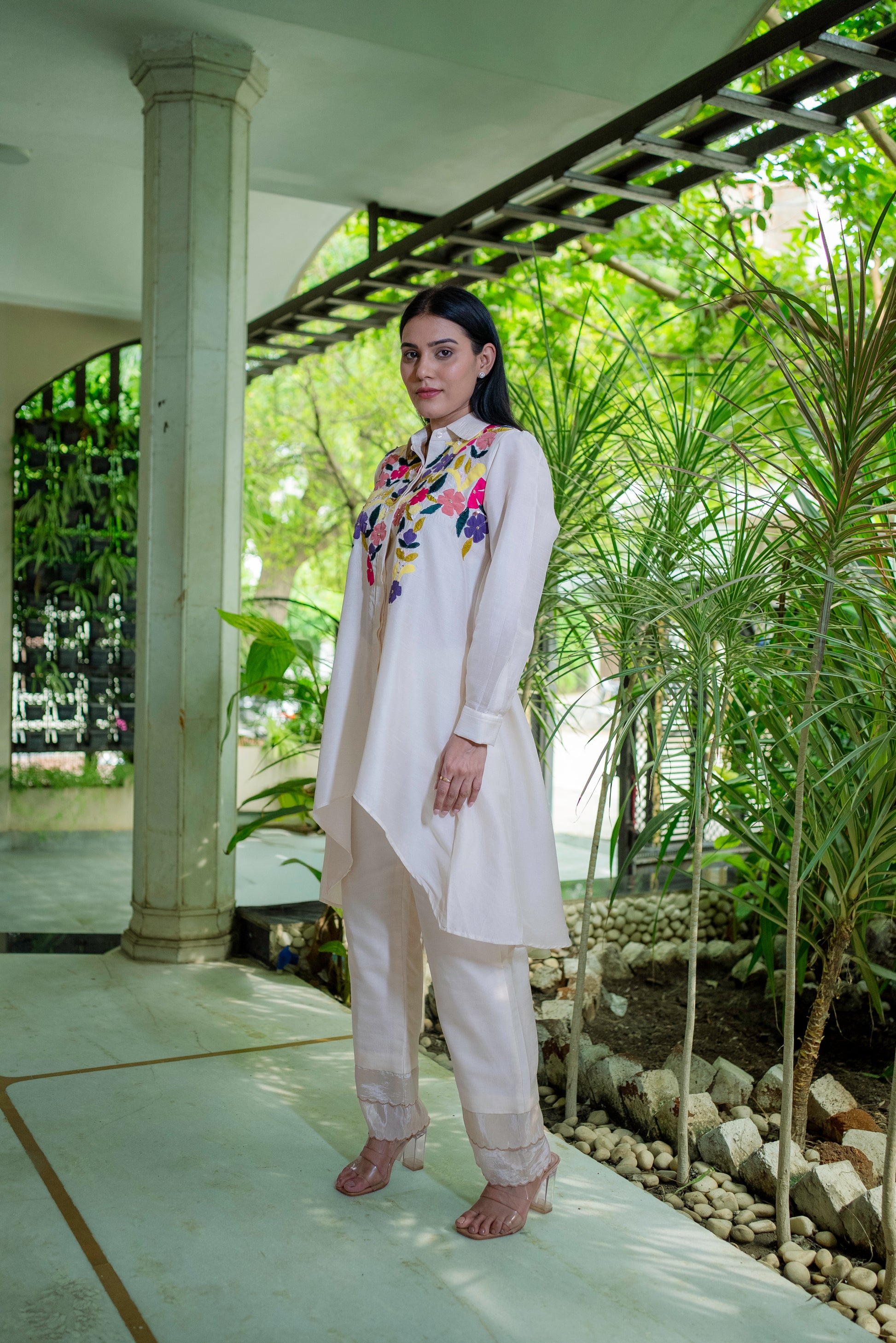 Featuring delicate embroidery, this ivory dress exudes grace and timeless elegance.