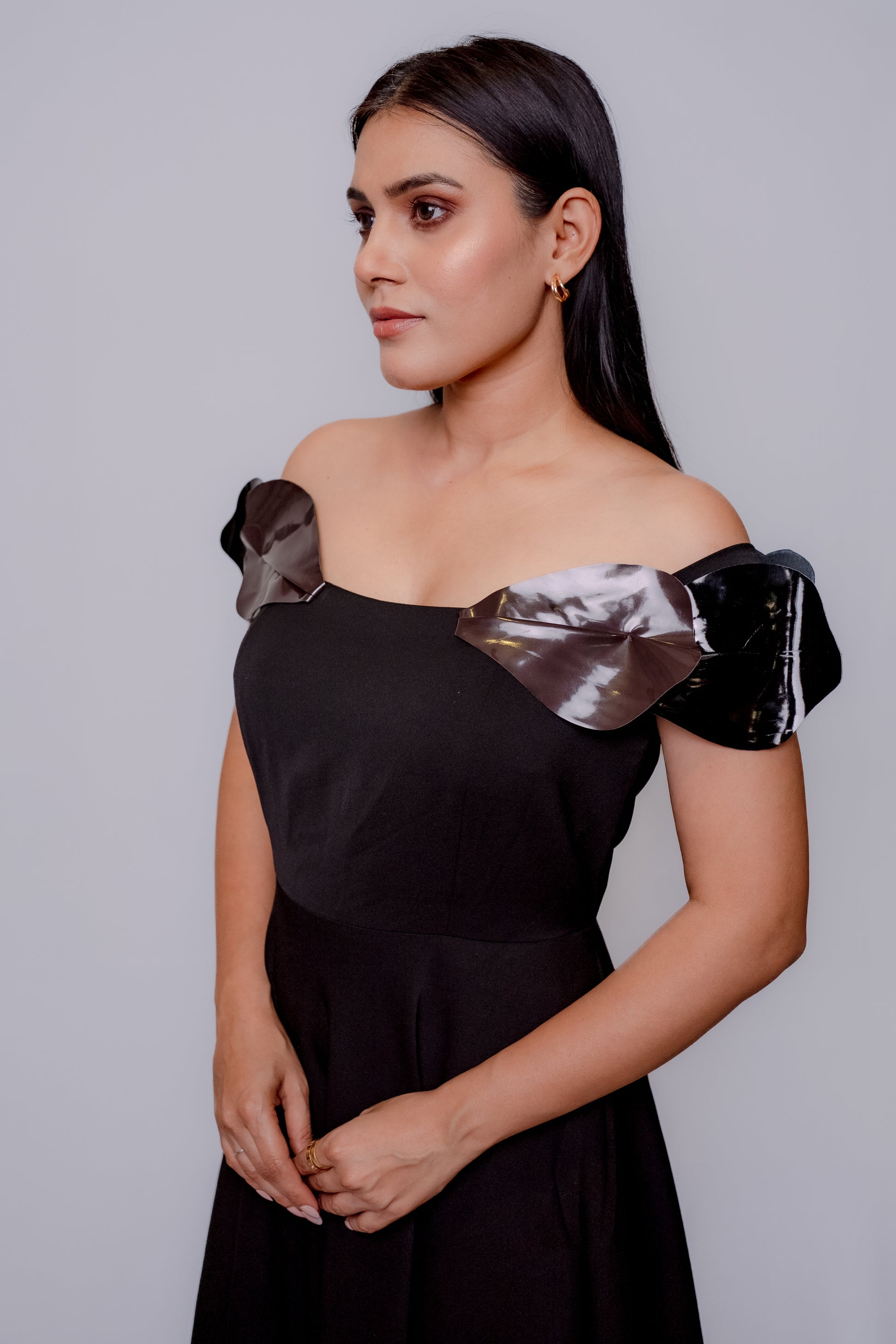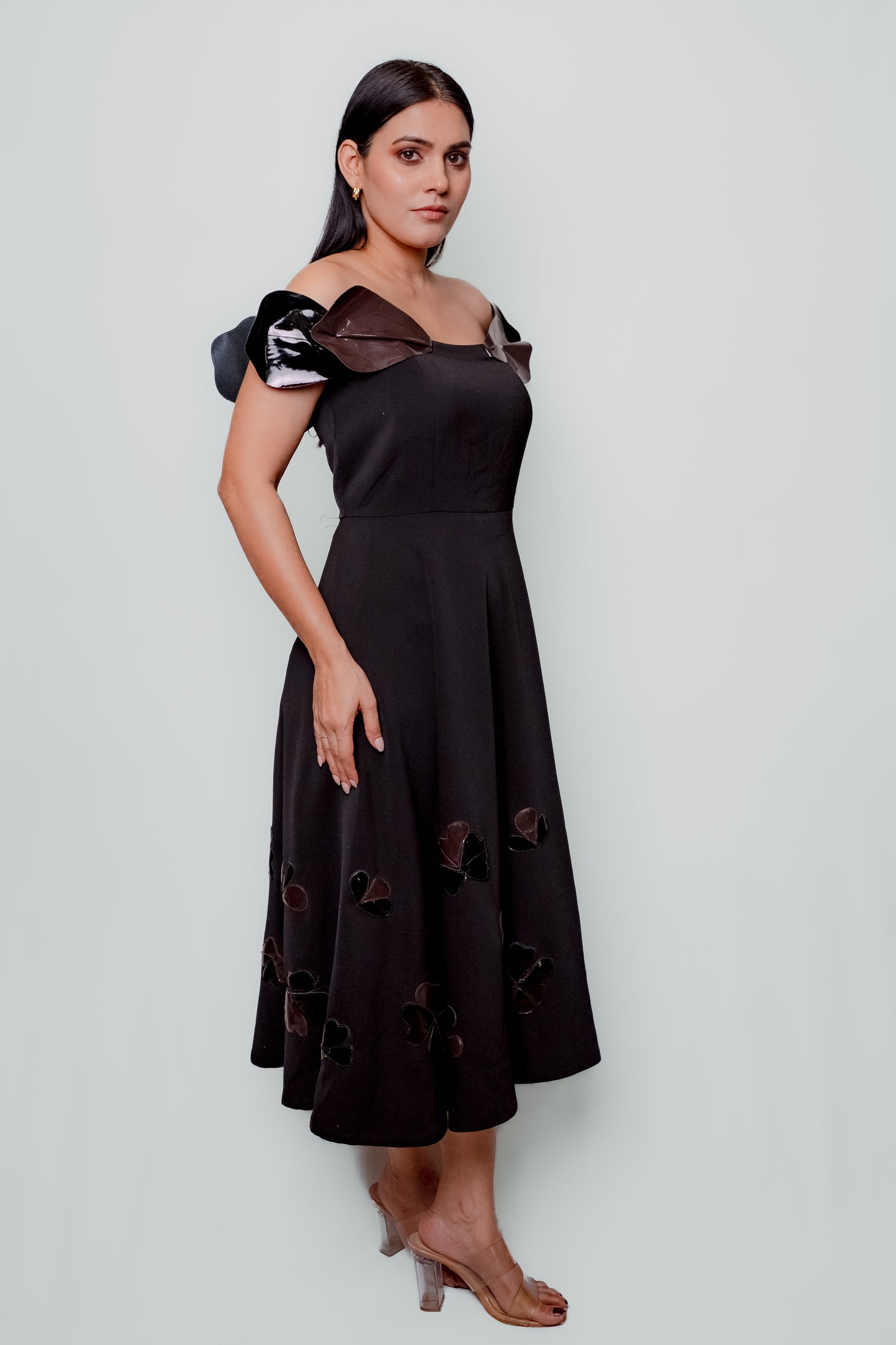 Featuring rich brown leather adorned with intricate embroidery, this dress exudes refined craftsmanship and timeless elegance.